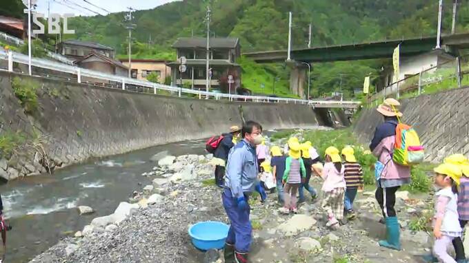 環境保護の大切さを知ってもらおうと、木曽町で園児たちが、アマゴの放流に挑戦しました。
