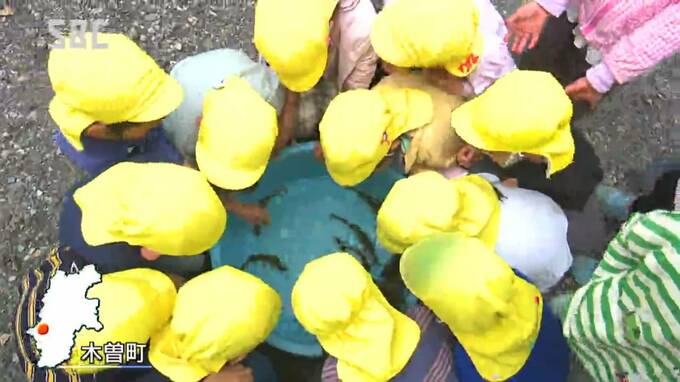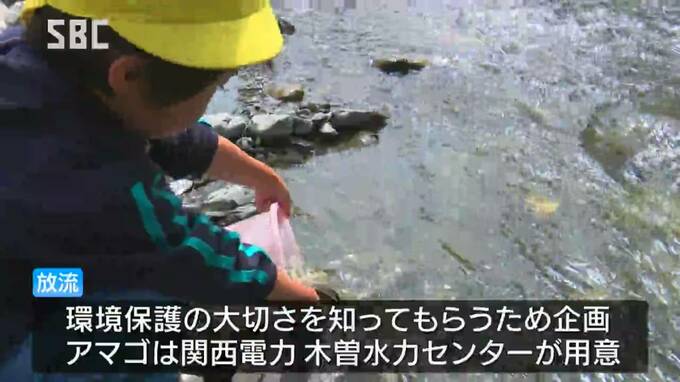 川に親しみ、環境保護の大切さを知ってもらおうと、町が企画したもので、放流したおよそ250匹は、関西電力木曽水力センターが用意したということです。