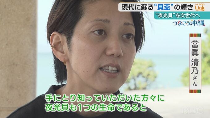 當眞清乃さん「現状を伝える人も必要だと思っています。夜光貝の置かれている状況。歴史的な価値、そういうものも含めて、みんなで自然を守っていこうというよりは、1つ1つ大事に、どの素材もそうだが大事に使っていくということ。それを発信できるといいなと思っています」