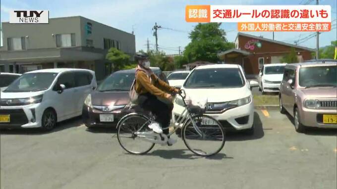 山形県東根市で25日、外国人技能実習生に日本の交通ルールを正しく学んでもらおうと、自転車の交通安全教室が開かれました。