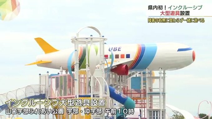 インクルーシブ大型遊具が県内で初めて山口県宇部市に設置され内覧会が開かれました。