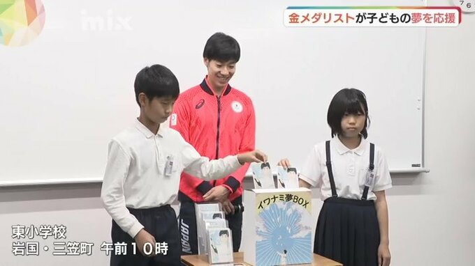 東京オリンピック金メダリストの加納虹輝選手が、子どもたちの悩みに答え、夢を応援する「夢BOX」が、山口県岩国市の小学校に設置されました。設置されたのは岩国市の東小学校で、加納選手が見守るなか、6年生の児童2人がはがきを投かんしました。