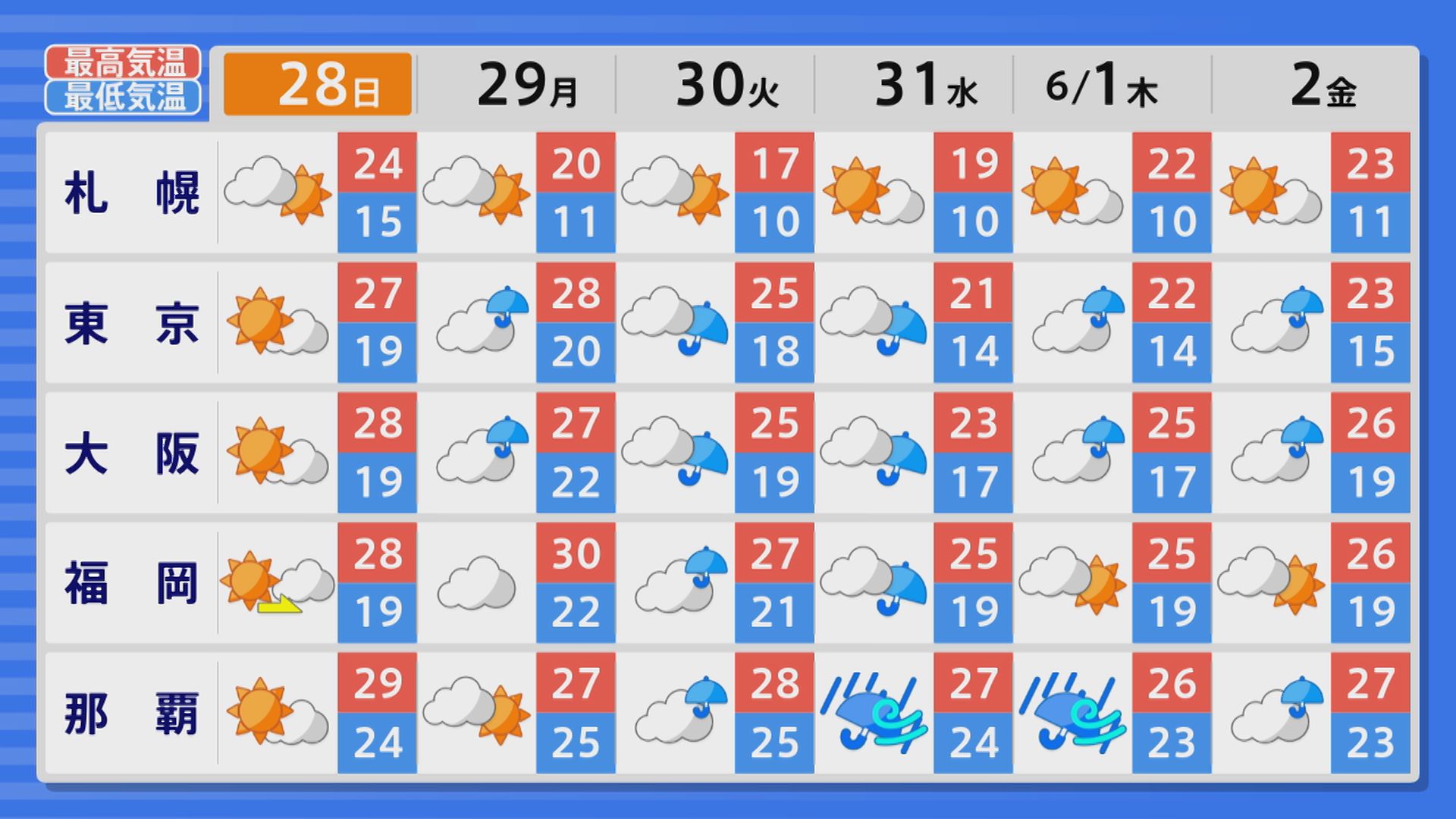 富山県では、あす27日(土)とあさって28日(日)はおおむね晴れそうです。特にあさっては気温が上がり、日中の最高気温は富山で28度まで上がる見込みです。