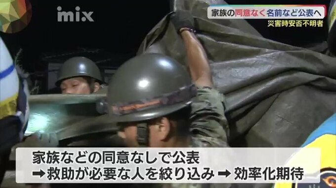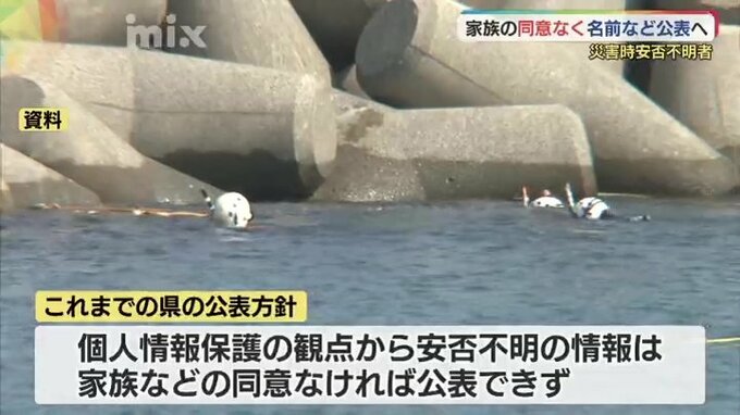 方針策定以降、県内で該当する災害はありませんでしたが一般的に、この同意を得ることは、手間がかかる作業とされています。家族などの同意なしに公表することで、救助が必要な人を絞りこむことができ、救助活動の効率化が期待できるということです。