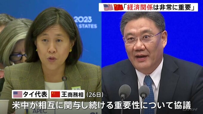 アメリカの通商代表部=USTRの代表と中国の商務相が26日、会談しました。米中の経済閣僚による2日続けての会談です。アメリカ側の発表によりますと、通商代表部=USTRのタイ代表と中国の王文濤商務相は26日、APEC=ア…