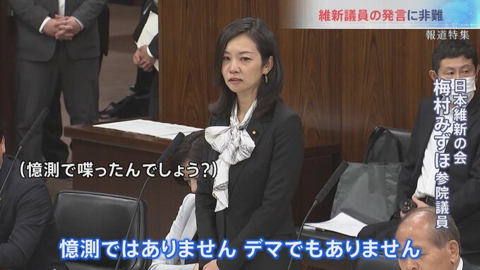 「問題提起として間違ったことをしたとは思っておりません。梅村みずほ自身が本会議の登壇においては、原稿は書かれましたけども、我々も最後チェックをしてその上で登壇していただいているというような事実関係です」