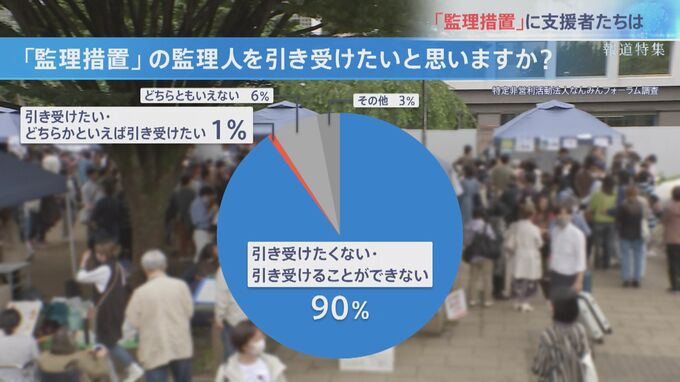 法務省は難民申請者の長期収容を防ぐためだというが、 NPO法人「なんみんフォーラム」によると、支援団体や弁護士などにアンケートを取った結果、「監理人を引き受けたくない・引き受けることができない」と答えた割合は90%に及ぶ。