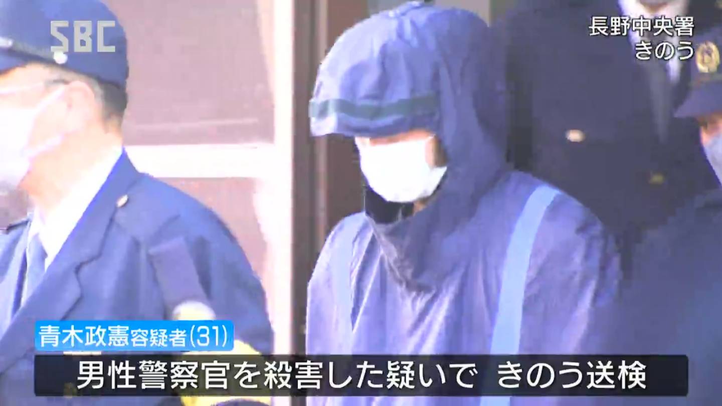 男性警察官を殺害した疑いで27日、送検された中野市の農業・青木政憲容疑者31歳。