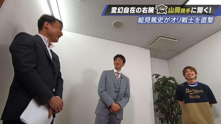 昨季で現役を引退した野球解説者の能見篤史さんが、オリックス戦士に直撃インタビュー。今回は、変幻自在に変化球を操る山岡泰輔投手。能見さんが投手兼任コーチだった時から、2人はいつもキャッチボールをしていた仲。白球でも常に会話をしてきた仲だからこそ分かる深い話が盛りだくさん。主なやり取りは以下の通り。