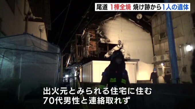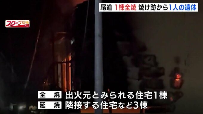 27日夜、広島・尾道市で起きた住宅4棟が焼ける火事で、出火元とみられる住宅の焼け跡から1人が遺体で見つかりました。