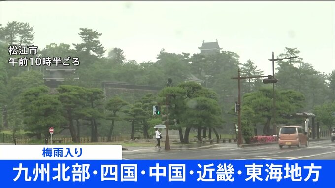 本格的な梅雨のシーズンが到来です。気象庁はきょう午前11時ごろ、山口県を含む九州北部と四国、中国、近畿、東海のあわせて5つの地方で「梅雨入りしたとみられる」と発表しました。いずれも平年と比べ、1週間程度…