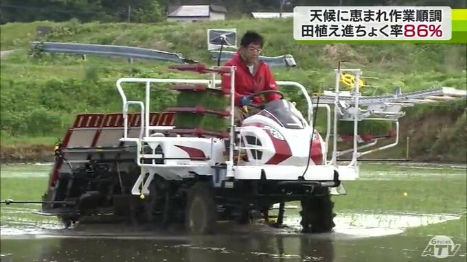青森県内の田植えの進捗率は5月25日現在、県全体で86%となっていて、いつもの年より7ポイント高くなっています。青森県のまとめによりますと、県内の田植えの進捗率は5月25日現在、全体で86%で、地域別では西北で93…
