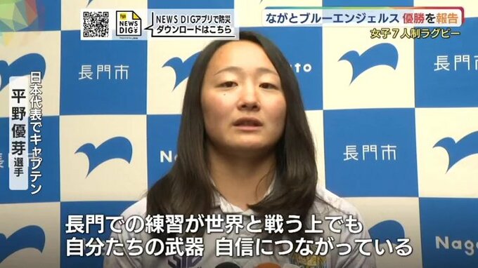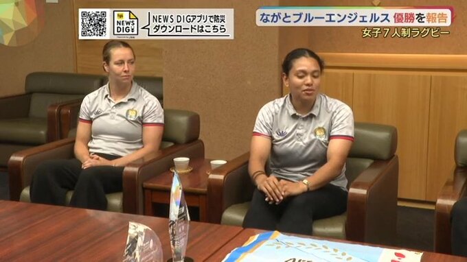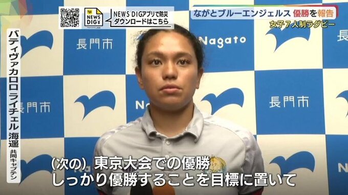 女子7人制ラグビーの国内最高峰リーグの熊谷大会で優勝した「ながとブルーエンジェルス」の選手が長門市の江原市長に優勝を報告しました。