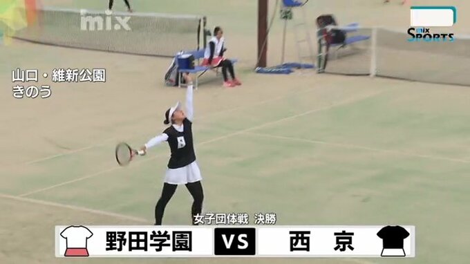 テニスの女子団体決勝は、去年のインターハイ王者野田学園に、西京が挑みました。