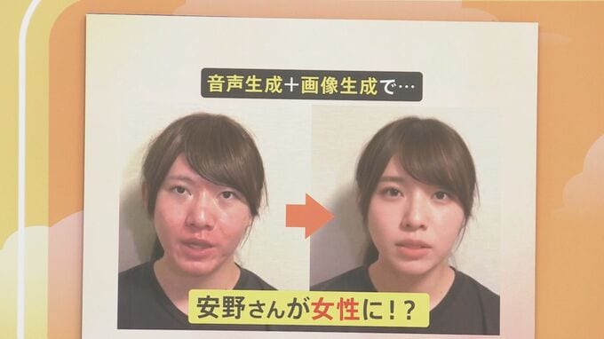 生成AIは進化していまして、声だけではなくて、安野さんの顔を“女性に変換”して喋らせる映像もつくれます。
