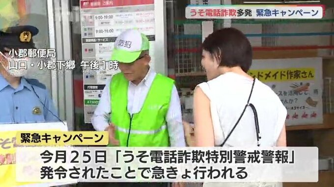 このうち山口市の小郡郵便局には山口南警察署の署員と地元の防犯ボランティアが訪れた人たちに注意を呼びかけました。