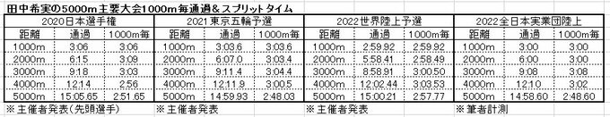 トラックの1000m、3000mという距離でのスピード練習ではなく、5km、10kmと走るジョグのスピードが上がっている。田中コーチは「5000m仕様の体になっている」と言う。田中本人も「(5000mに)生かしたいな、と思っています」と話した。