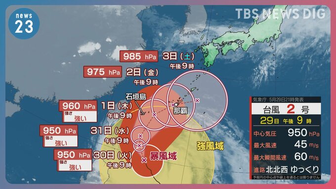 「大型で非常に強い」台風2号が北上し、29日、沖縄県の石垣島が強風域に入りました。気象庁は、九州北部から東海地方にかけて梅雨入りしたとみられると発表。台風の影響で梅雨前線が活発化し、本州でも大雨に警戒…