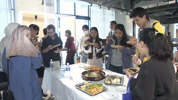 異文化に対する理解を深めようと、広島大学で交流会が開かれました。29日の交流会には、広島大学の学生と教職員などおよそ200人が参加しました。参加者たちにふるまわれたお好み焼き…。豚肉ではなく、特別な鶏肉…
