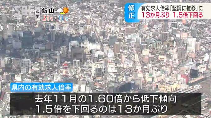 長野県内の4月の有効求人倍率は1.48倍で13か月ぶりに1.5倍を下回りました。