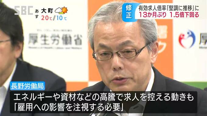 エネルギーや資材などの高騰から求人を控える動きもあるということで長野労働局では雇用への影響を引き続き注視する必要があると指摘しています。