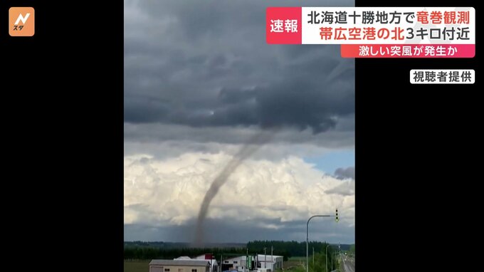 北海道の十勝地方できょう午後、竜巻が観測されました。気象庁も「竜巻注意情報」を出して注意を呼びかけています。札幌管区気象台によりますと、午後3時22分、北海道の帯広空港の職員が空港の北3キロ付近で竜巻を…