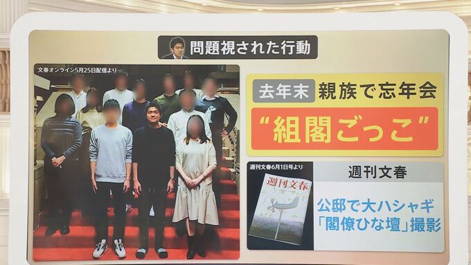 週刊誌報道があったのは、2022年末、親族で忘年会を行った際に撮影された写真。“組閣ごっこ”というような言われ方もしました。週刊文春では「公邸で大ハシャギ 『閣僚ひな壇』撮影」という記事になっていました。