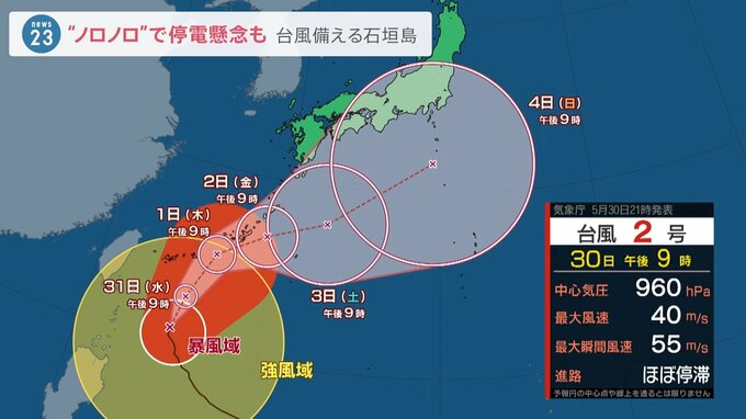 台風2号は6月1日に先島諸島に最も接近し、6月3日ごろにかけて沖縄本島に近づく見込み。離れた場所でも大雨の恐れがあり、注意が必要です。
