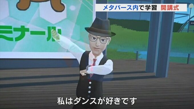 30日はメタバース空間内で開講式が行われ、この取り組みを行う甲斐市の保坂武市長や生徒らが自分の分身(アバター)を作って参加しました。