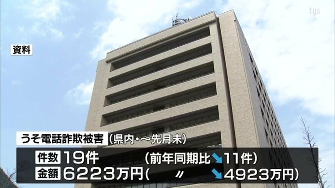 山口県内で先月末までに確認されたうそ電話詐欺の被害は19件で、被害者の8割近くが65歳以上の高齢者でした。県警のまとめによると、県内で先月末までに確認されたうそ電話詐欺の被害は19件、被害額は6223万円で、…