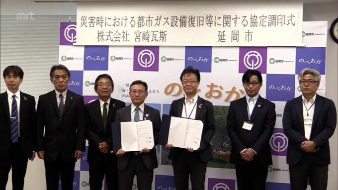 宮崎県延岡市は、災害時に都市ガス設備の早期復旧を図るため、宮崎ガス延岡支店と協定を結びました。延岡市役所で行われた調印式では、延岡市の読谷山市長と宮崎ガスの須崎孝一社長が協定書に調印しました。今回の…