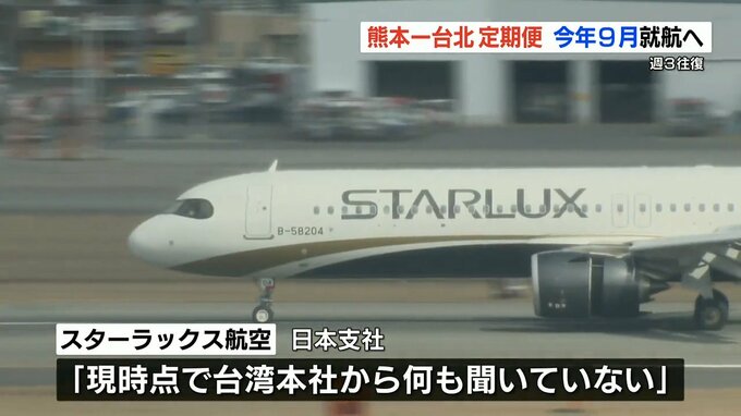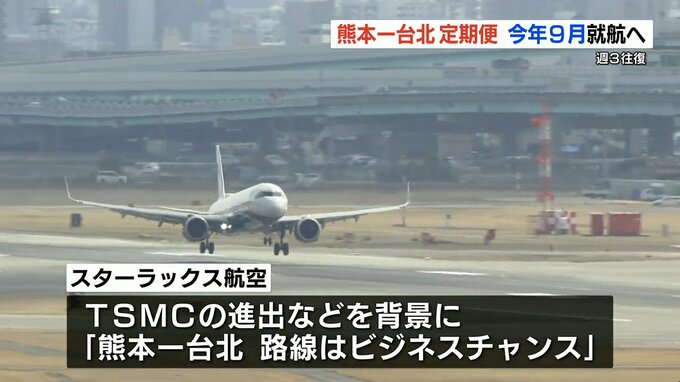スターラックス航空は熊本空港の新ターミナル開業後、熊本・台北間の路線についてチャーター便 4往復を運航していて、TSMCの進出などを背景に「熊本ー台北間の路線はビジネスチャンスと思っている」と語っていました。