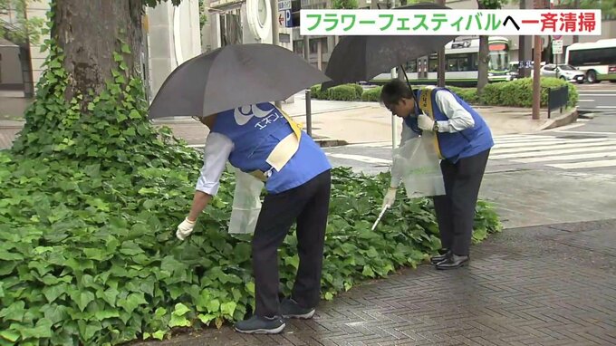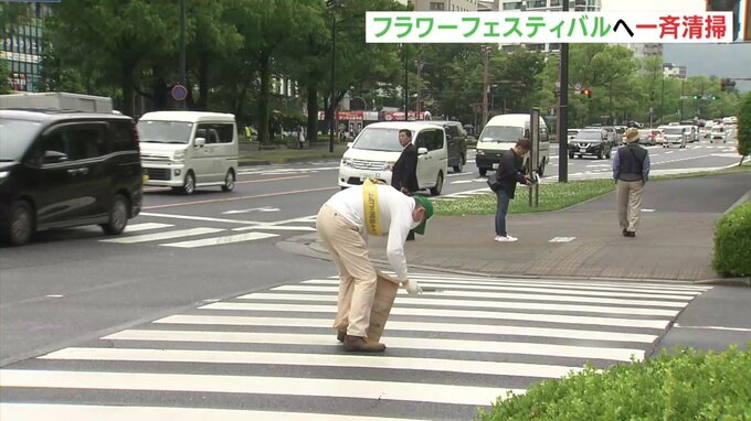 来月、開催される「ひろしまフラワーフェスティバル」に向け、平和大通り(広島市)などで一斉清掃が行われました。