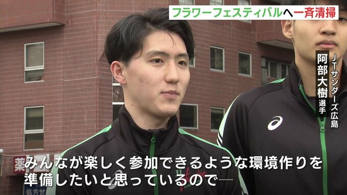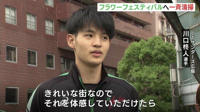 一斉清掃には、有志の企業やボランティア団体など、およそ400人が参加しました。ひろしまフラワーフェスティバルに向けた清掃活動は、訪れる人たちに気持ちよく過ごしてもらおうと、2014年から実施されています。