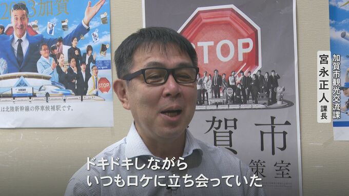 加賀市観光交流課・宮永正人課長「第一作目のときは、市民の方を募集してオーディションもして、市の職員も一緒になってたくさん出演している。私も公務員なので、くだけすぎるのはちょっとこわいけど、制作者サイドとしてはおもしろさを追求して、かなりくだけようというところがあるので、そこのかねあいが心配。ドキドキしながらいつもロケにたちあっていた。」