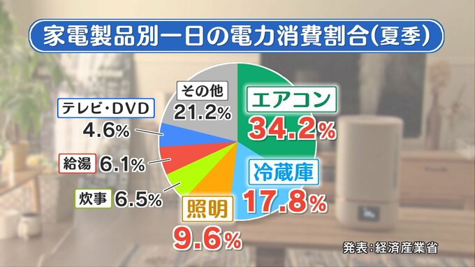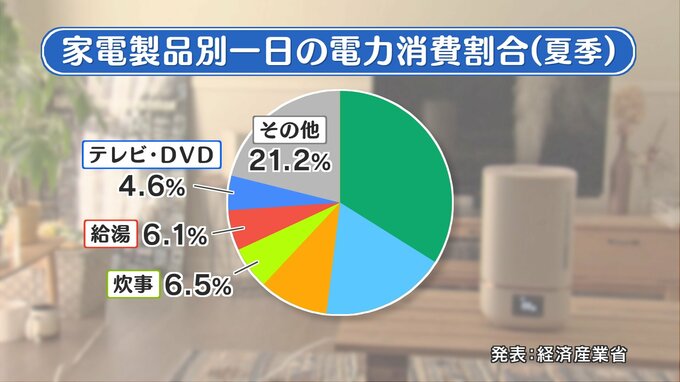 夏場の家庭における1日の電力の消費割合について経済産業省がまとめたものです。電力消費量が多い電化製品は何だと思いますか?
