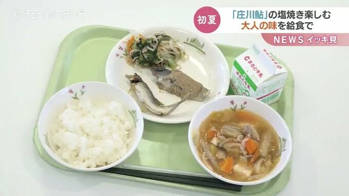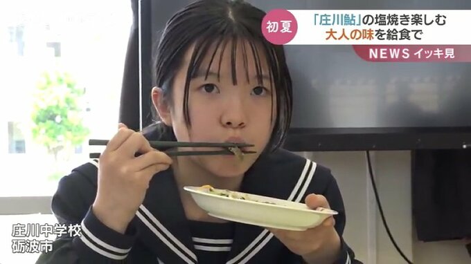 富山県砺波市のいわゆる “となみブランド” 「庄川鮎(しょうがわあゆ)」。1本1本、ていねいに焼き上げる「塩焼き」は臭みが少なく香りが高いのが特徴です。この「庄川鮎」の塩焼きが中学校の給食に登場しました。