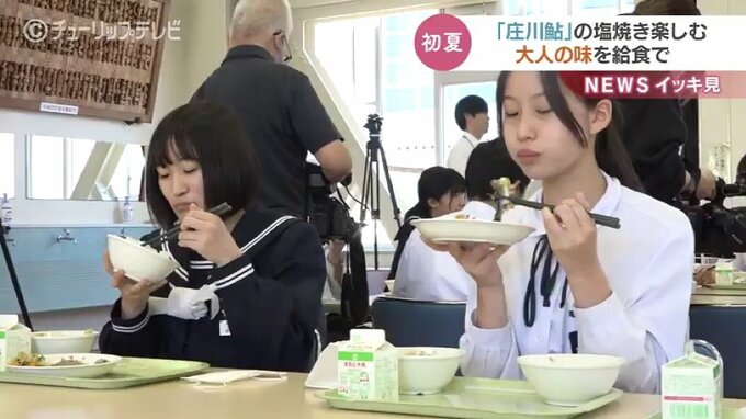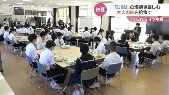 31日朝焼きあげた庄川鮎を市内4つの中学校の3年生たちに提供。このうち庄川中学校では地元の食材に触れながら、少し大人の味を満喫していました。