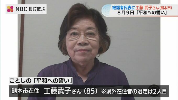 8月9日に執り行われる長崎市の平和祈念式典で『平和への誓い』を読み上げる被爆者代表に、ことしは熊本市在住の女性が選ばれました。被爆者代表に選ばれたのは、熊本市に住む工藤 武子さん(85)です。7歳の時、爆…