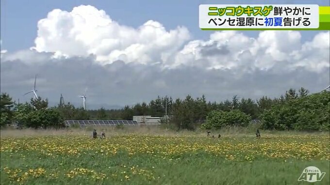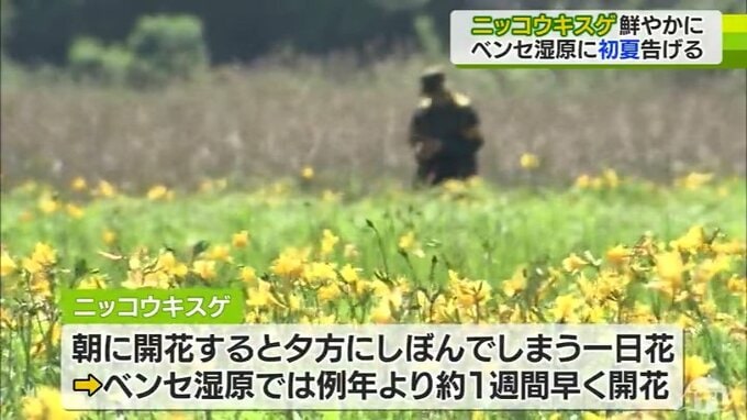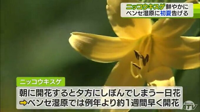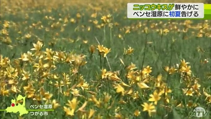青森県つがる市のベンセ湿原では、ニッコウキスゲが見ごろを迎えています。