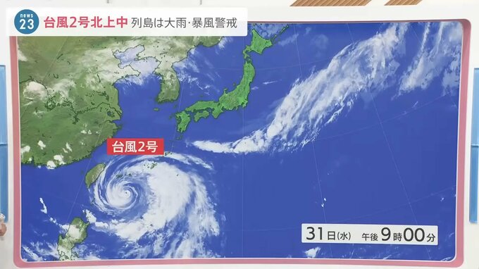 石垣島では先程、最大瞬間風速30m以上を観測しました。現在も大型で強い台風なんですけれども中心よりも東側に雨雲として発達したものが集中している状況です。中心付近は風も強いですが、さらにこれから近づいていくにつれて、沖縄本島でも雨のピークを迎えるということになっていきます。