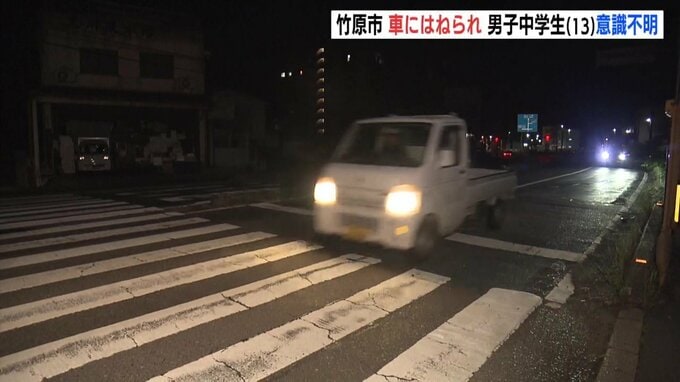はねられたのは、竹原市に住む中学2年の男子生徒(13)で、頭などを強く打ち、意識不明の重体だということです。