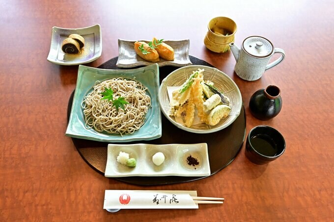 また、昼食は、渡辺名人は、セットのサラダとデザートは抜いて「信州ポーク勝カレー」を(写真上)、藤井六冠は「信州蕎麦と天麩羅膳」を(写真下)それぞれ食べて、終盤となる午後の対局に臨んでいます。