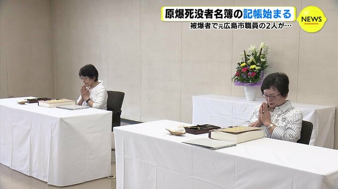 死没者名簿への記帳を行うのは、被爆者で元広島市職員の 池亀和子 さんと 中本信子 さんで、亡くなった被爆者の名前や年齢などを書き入れていきました。