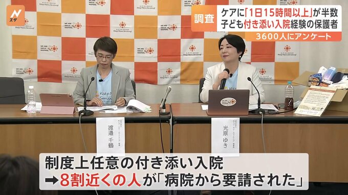 子どもが入院した際に泊まり込みで世話をする「付き添い入院」を経験した保護者の半数が、子どもの世話やケアに「1日15時間以上費やした」と答えたことが分かりました。NPO法人の「キープ・ママ・スマイリング」は…