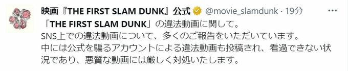 映画「THE FIRST SLAM DUNK」の公式ツイッターは1日、違法動画への厳しい対処について言及しました。