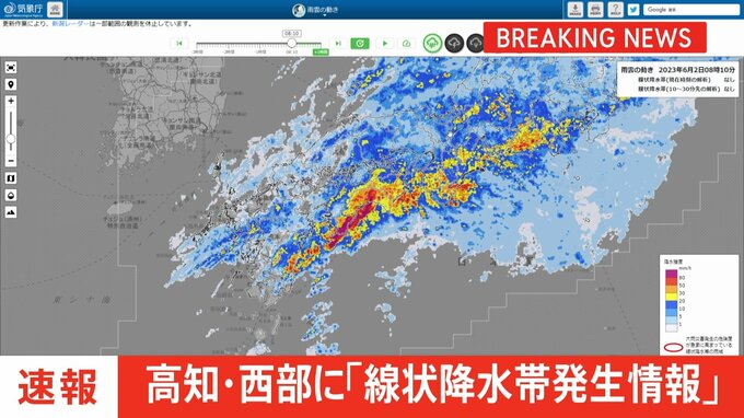 気象庁は、午前8時10分、高知県に「線状降水帯発生情報」を発表しました。この情報が発表された地域では、線状降水帯によって非常に激しい雨が降り続き、土砂災害や浸水、河川の洪水など災害の発生する危険度が急…