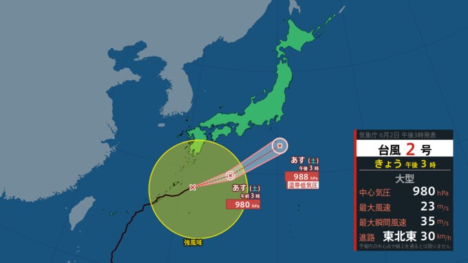 台風2号「梅雨末期のような空」で「線状降水帯」 2日~3日関東~関西・西日本も大雨【雨・風シュミレーション6月2日(金)~6月3日(土)】台風情報最新