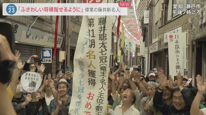 藤井新名人の地元・愛知県瀬戸市では、大勢の人が集まり喜びの声をあげました。
