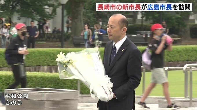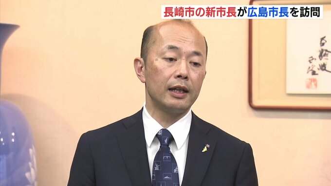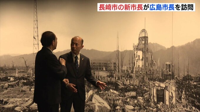 4月の市長選挙で初当選した長崎市の 鈴木史朗 新市長が広島市の 松井一実 市長を訪ね、「核なき世界」の実現に向けた連携を確認しました。